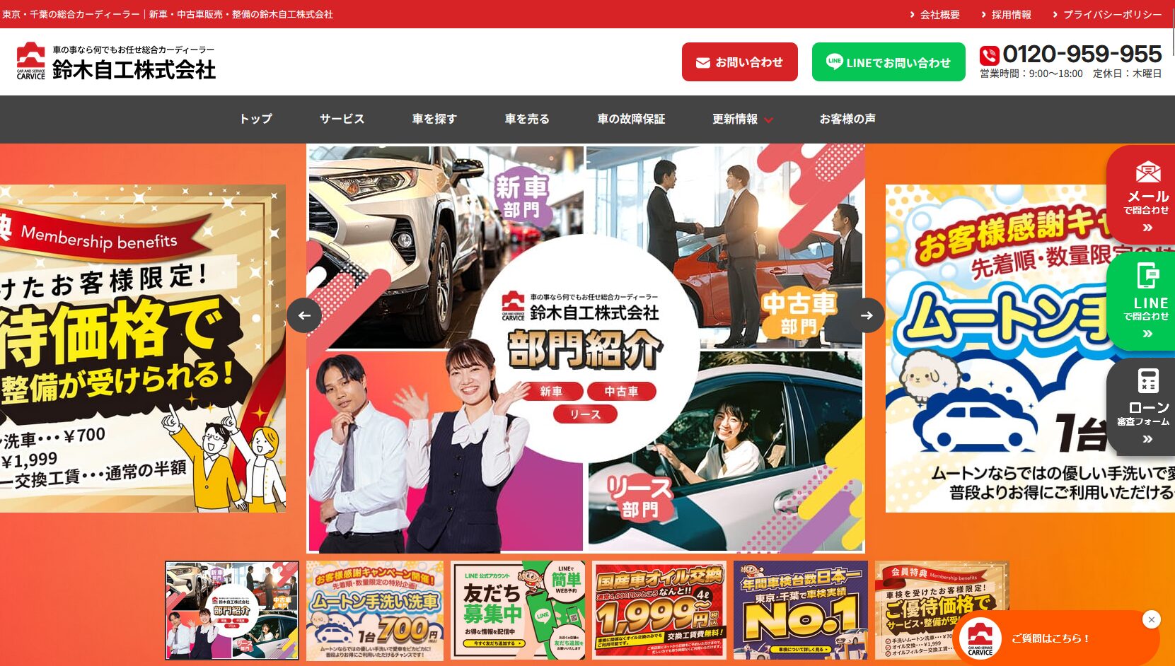 鈴木自工株式会社は、東京・千葉に店舗を展開し、創業60周年を迎えた地域密着型の総合カーディーラーです。